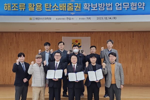이에 전남도는 두 기업과 손잡고 범국가적 과제인 해조를 활용한 탄소배출권 확보를 위한 관련 연구에 집중할 계획이다. 협약에 따라 전남해양수산과학원은 해조 활용 탄소배출권 확보 방법 연구와 블루카본 개발, 전남 수산업 발전을 위한 해조양식 및 바다숲 조성, 종자생산 기술개발 등 연구에 적극 협력한다.
