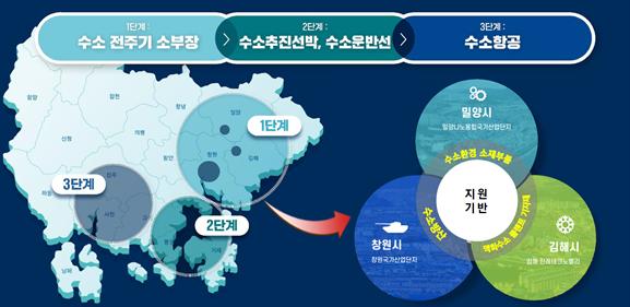 또한, 수소기업 집적화가 높은 창원, 밀양, 김해 3개 지역을 중심으로 경남형 수소특화단지 조성에도 박차를 가한다. 산학연 집적, 기반 구축, 생태계 육성, 기술경쟁력 강화를 4대 전략으로, 창원은 수소기반 방산, 밀양은 저장용기 기자재, 김해는 액화수소 기자재를 중심으로 경남 수소산업 경쟁력을 강화해 나갈 계획이다.