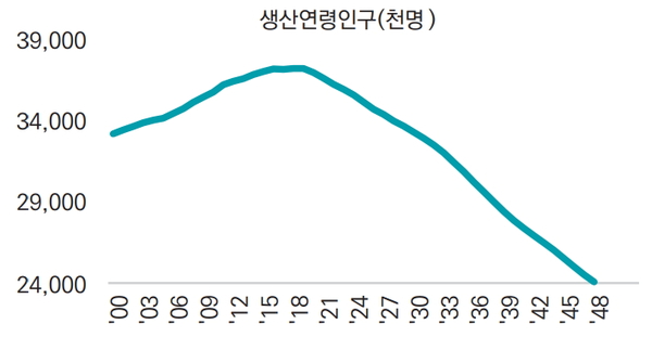청장년층이 생산가능인구에서 차지하는 비중은 감소하고, 장년·고령층 비중은 증가하는 등 생산가능인구의 구조적 변화는 노동생산성에도 악영향을 미칠 것으로 보인다. 이에 생산인구 감소의 부작용을 완화할 수 있는 우리 기업의 생산성 제고 방안 마련이 절실한 실정이다.