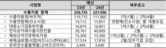 지원조건, 지원내용 등이 포함된 사업별 세부공고는 사업별 공고 일정에 맞추어 발표될 예정이다. 통합공고와 사업별 세부공고는 중소벤처기업부 누리집, 수출바우처 누리집, 중소기업 해외전시포털 등에서 확인할 수 있다.