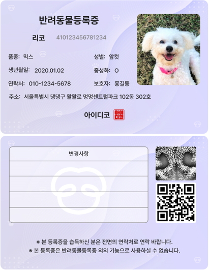 이에 따라 파이리코는 지난 19일부터 아이디코(ID:CO) 앱을 앱스토어에 공개하고 본격적인 모바일 비문 인식 서비스를 시작했다. 앱에서 코 사진을 찍어 등록하면 신분증을 발급받을 수 있다. 비문 기반 신분증 발급 1호견은 UNIST에서 심리 치료견으로 활약 중인 ‘브리’(보더콜리 견종)다.