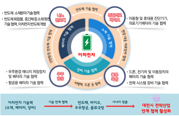 한편, 대전시는 전 세계적 친환경·디지털 정책에 따라 이차전지산업이 핵심 산업으로 주목받고 지속적인 성장이 전망됨에 따라 지난해에 ‘대전시 이차전지산업 생태계 기반 조성 기본 전략’을 수립하고 ‘산학연관 이차전지산업 발전협의회’를 발족하여 협업체계를 마련했다.