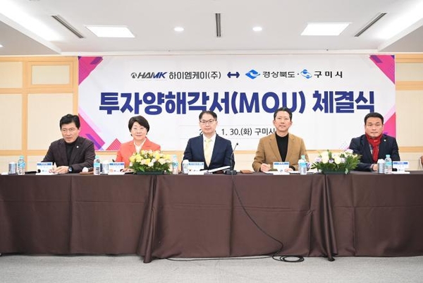 하이엠케이㈜는 30일 구미시청 대회의실에서 경북도, 구미시와 이달희 경북도 경제부지사, 김장호 구미시장, 조정우 대표 등이 참석한 가운데, 이 같은 내용의 투자양해각서(MOU)를 체결했다.