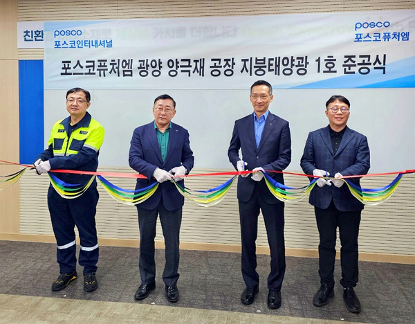 [기계신문] 포스코인터내셔널과 포스코퓨처엠은 6일(화) 포스코퓨처엠 광양 양극재 공장에서 ‘탄소중립 실현을 위한 지붕태양광 설비 준공식’을 개최했다. 이 사업은 포스코인터내셔널과 포스코퓨처엠이 재생에너지 생산과 사용 확대를 시도하는 첫 번째 협력 프로젝트다.