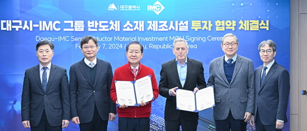 [기계신문] 대구시는 7일(수) 산격청사에서 IMC그룹과 달성군 가창면 내 IMC엔드밀(유) 반도체 소재 제조시설 신설을 위한 투자협약을 체결했다고 밝혔다.