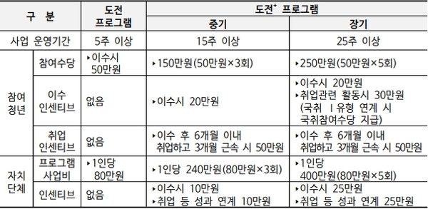 아울러 프로그램 이수 후 6개월 이내 취업하고 3개월 근속하는 청년에게는 50만원의 취업인센티브가 추가로 지원되며, 도전+이수자에 대한 국민취업지원제도 연계를 강화하여 끊김 없는 체계적인 고용서비스를 제공할 예정이다.