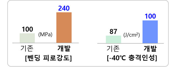 PosZET® GIGA 기술을 활용하면 접합부의 굽힘 피로강도는 기존 대비 약 2배 이상 늘어나고, 충격인성은 약 15% 높아진다. 이 기술을 섀시∙프레임 등 자동차 부품 제작에 적용하면 일반 용접기술을 적용했을 때보다 반복적 충격이나 온도 변화에 의해 접합부가 쉽게 깨지지 않고 버틸 수 있어 차량 안전성 향상에 기여할 수 있고, 용접부위 성능이 높아짐에 따라 강판 두께를 줄일 수 있어 차량 경량화 설계에도 기여할 것으로 기대된다. 또한, 니켈을 주로 사용하던 기존 방식 대비 원가는 절반 가량으로 줄어든다.
