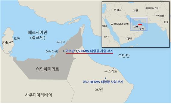 이번 사업은 UAE 수도 아부다비에서 동쪽으로 70 ㎞ 떨어진 부지에 약 1조원 이상을 투입해 발전 용량 1,500 ㎿ 태양광발전소를 짓는 초대형 신재생에너지 발전 건설 프로젝트다. 설비용량과 사업비 모두 한국 기업이 수주한 태양광발전 사업 가운데 단일사업으로는 가장 큰 규모다.