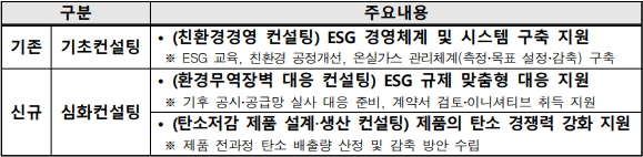 올해 지원사업은 ESG 경영 기본기를 다지는 기존의 기초 컨설팅 과정 외에 실질적인 환경무역 규제를 적시에 대응할 수 있도록 심화 과정을 신설했다.