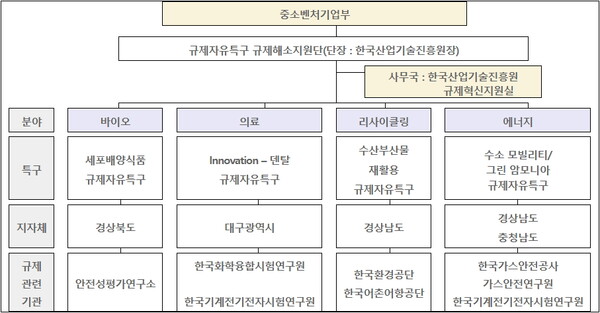 이번에 출범한 규제해소지원단은 규제법령 관계부처가 특구 지정 시에 부대 조건으로 요구한 ‘특구별 민․관협의체’ 역할을 수행하게 된다.