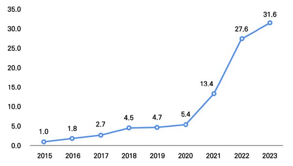 R&D 투자규모와 인력도 역대급으로 늘어나고 있다. 2023년 비야디의 R&D 투자액은 전년 대비 112% 증가한 395억 7천만 위안(한화 약 7조 5천억 원)으로, 2019년 대비 4.7배 증가했다. 동 기간 비야디는 총 37,869건의 중국 특허와 10,192건의 해외 특허를 출원했으며, R&D 인력은 전체(약 70만 명)의 15%인 102,800명에 달한다.