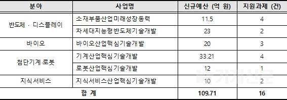 주요 과제를 살펴보면, 반도체 분야에서는 초미세 반도체 제조를 위해 필요한 세계 최초 원자레벨 식각장비 상용화 기술개발, AI 기반의 차량용 애플리케이션프로세서(AP) 국내 최초 상용화 기술개발 등을 지원하며, 디스플레이 분야는 초고해상도 디스플레이 개발을 위한 세계 최초 공정 기술개발 과제, 초절전 OLED용 소자 제조 기술개발 과제를 추진할 예정이다.