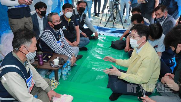 이 지회장과 류조환 민주노총경남본부장 등 노조원들을 위로한 김 지사는 “경남도 입장에서도 도민의 안정적인 일자리를 지키는 것이 무엇보다 중요하다”면서 “단식을 풀고 기운을 차려 함께 해법을 찾아가자”고 이야기를 시작했다.