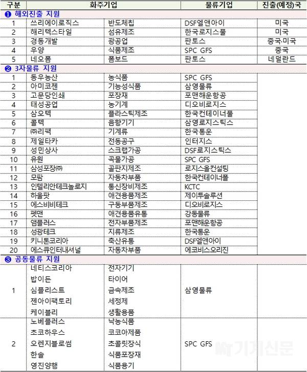 이에 따라 쓰리에이로직스(반도체칩)는 DSF엘앤아이(물류기업)와 협력하여 미국시장 진출을 목표로 현지운송·통관 등 최적화된 물류망 구축을 위한 컨설팅을 받게 된다.