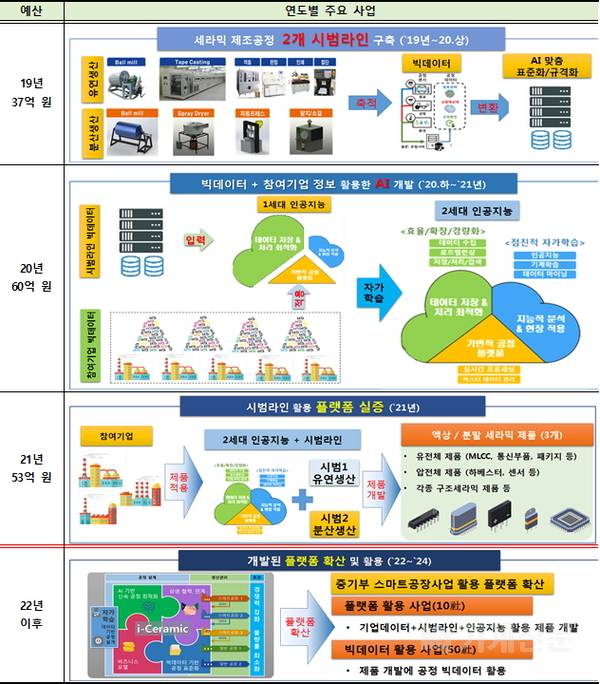 세라믹 제조혁신 플랫폼은 세라믹 기업이나 개발자가 언제, 어디서든 원격으로 접속하여 제품 스펙을 입력하면 빅데이터 분석을 통해 원료, 생산공정 등 최적 생산조건을 제공하고, 제품 불량을 자동으로 검사하는 인공지능 기능이 시연되었다.