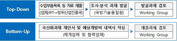 방위사업청은 민·관·군이 함께하는 KF-X 및 K-9 등 무기체계별 Working Group을 운영하여 부품 국산화 과제 발굴 및 개발 현안 검토 등 부품 국산화 활성화를 위해 노력해왔다.