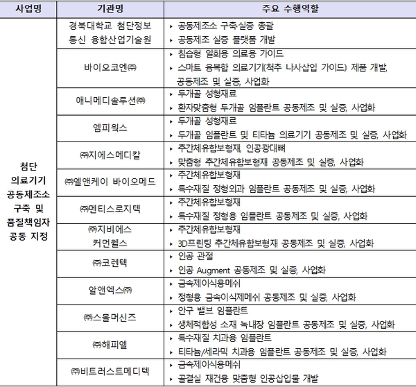첨단 의료기기 공동제조소 실증 사업은 정부–대학교–기업이 연계해 첨단 의료기기 공동제조를 위한 서비스 플랫폼을 조성하고 규제개선을 위한 유효성 실증과 동시에 산업화 성과를 창출하는 사업이다.